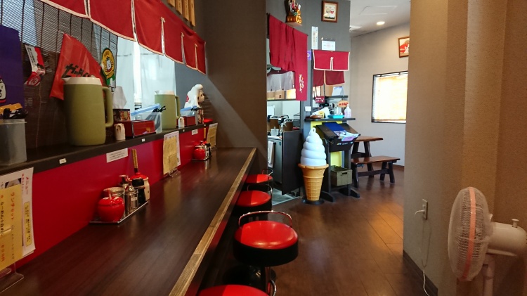 入口入って左側がカウンター、写真の右手奥がテーブル席です。