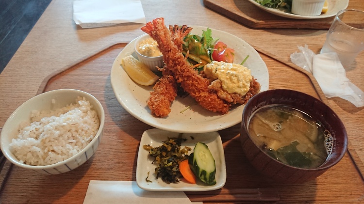 私は、大海老とから揚げ定食(1,410円・税別)
