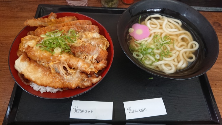 贅沢丼とは、その名の通り、カツとエビ、どんぶり界の人気の二大具材を一つの丼で楽しめるぜいたく丼。