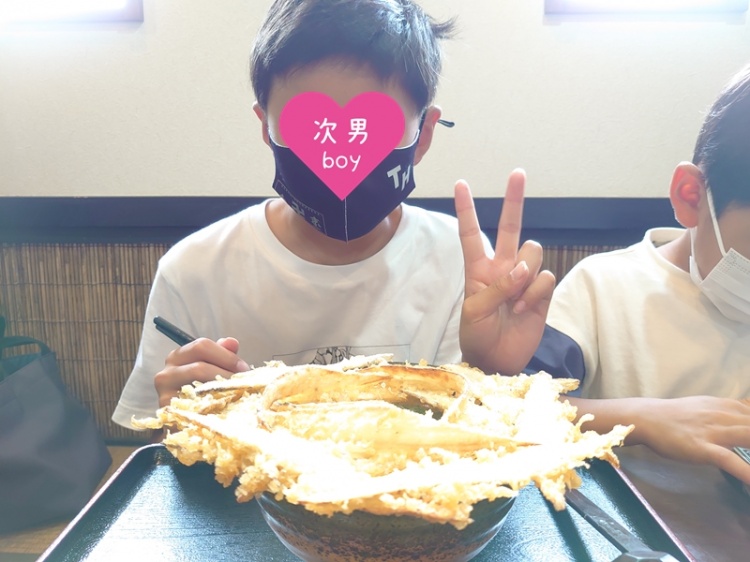 次男と見比べても、ごぼ天のサイズが凄いことがよくわかりますね(笑)