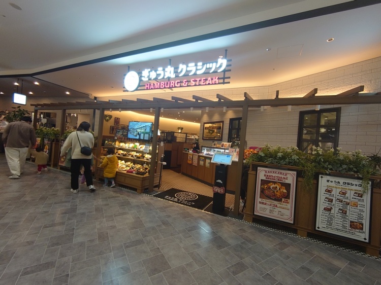 ぎゅう丸は、佐賀県嬉野町発祥、創業40年のハンバーグ専門店で、本店の雰囲気を残しつつその中に新しさを感じられるようなメニューとサービスということで「クラシック」がついているようです。