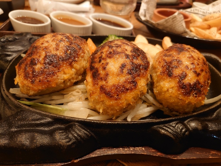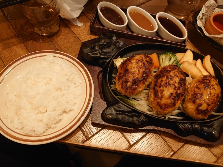 1つ150gのハンバーグが3つなので、食べ応えありますね![]()