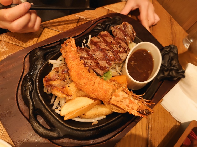 三男坊ちゃんは、お子様ランチは嫌!ステーキが食べたい!!と私に似て兄弟の中でも一番の肉好きなので、喜んでリクエストにステーキ&海老フライ(1,980円)ライス付きで!(た、高いwww)