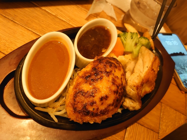 妻は多分、ハンバーグ&有田鶏のチキンステーキ(1,650円)ライス付き、かな?![]()