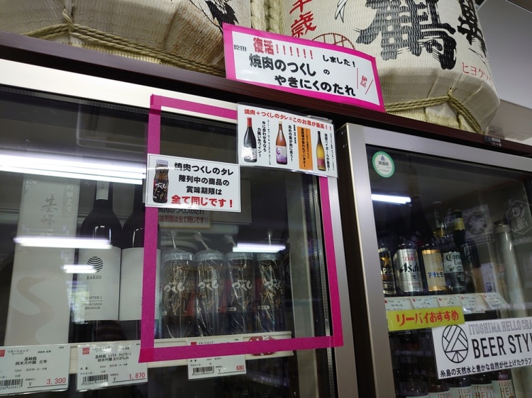 今は閉店してしまいましたが、焼肉のつくしはリーバイと同じく筑紫野市原田にあったのですが、お酒の卸をしている関係だったそうで、閉店後に有志から「タレを復活して欲しい!」という要望があり、それに応える形で「焼肉つくしのたれ」を販売することになり、リーバイでも取り扱わせてもらうようになったとのことでした。