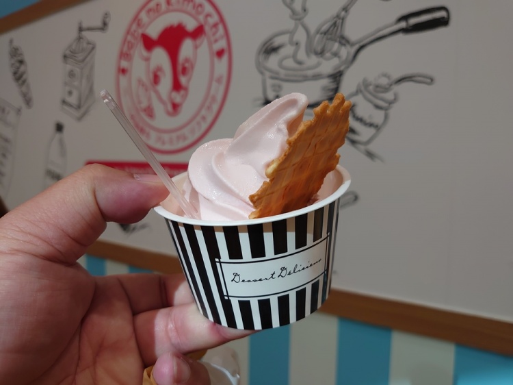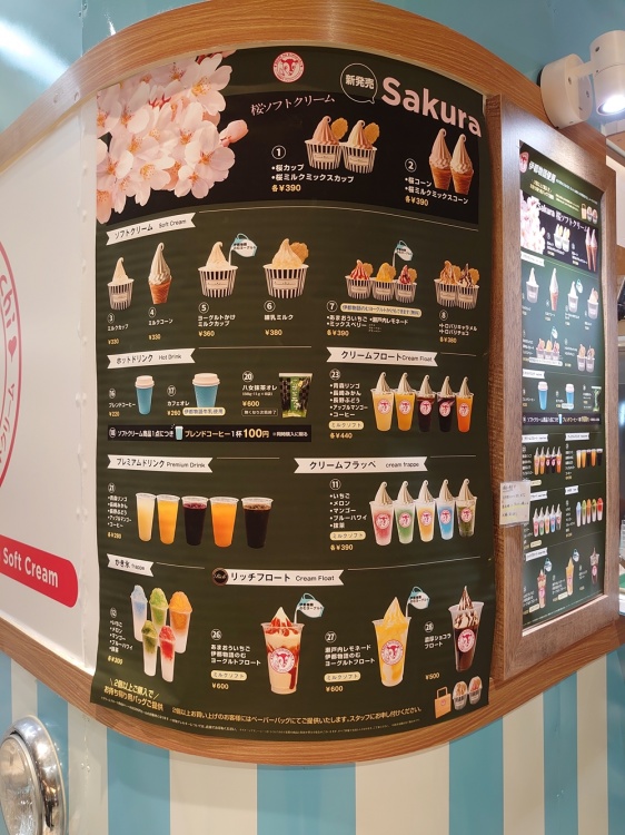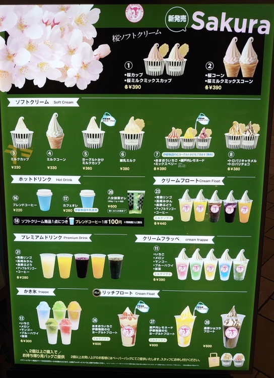 写真は4月30日のものですが、妻と私は新発売という桜ソフトクリームを注文。