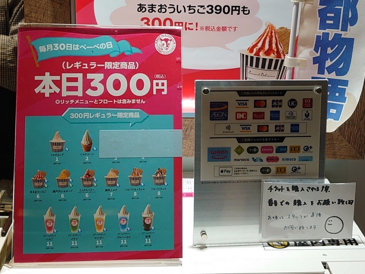 シーズンで、色んなキャンペーンをされているようですが、毎月30日はべーべの日ということで、レギュラー限定商品が300円になるという素敵な企画になります。
