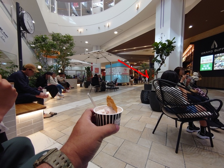 ちょうど、広場があるので座ってスイーツを楽しみながら休憩をはさむことも出来ます。(まさにオアシス(笑))